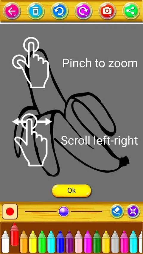 这本涂色本和虚拟绘图,满是您喜欢的水果图片,适合所有年龄段的家庭。适用于手机和平板电脑。 您可以在准备好的图像中填充颜色,也可以创建自己的原始图像。即使是小孩子也能轻松上手。这个游戏包括许多最喜欢的水果和房子周围的水果的美丽图像。 该游戏包括以下功能: 您可以着色的多种水果图片选择。 许多明亮和美丽的颜色可供选择,用于绘图和填充。 用颜色填充所有区域,用铅笔或画笔绘图,然后使用橡皮擦。 您可以在他们最喜欢的水果或基本上他们想要的任何东西上绘画、绘画或涂鸦。涂鸦、绘画和绘图从未如此简单和有趣,所以让我们从您最喜欢的水果开始吧。 现在是玩游戏的时候了 给你喜欢的水果和家里的水果上色