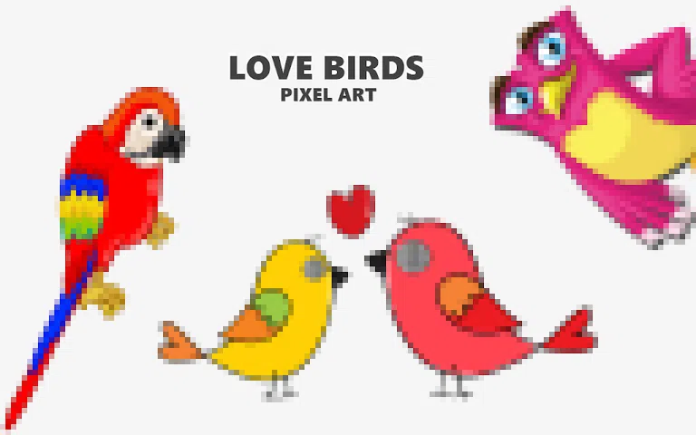 爱情鸟像素艺术|按数字填色2019