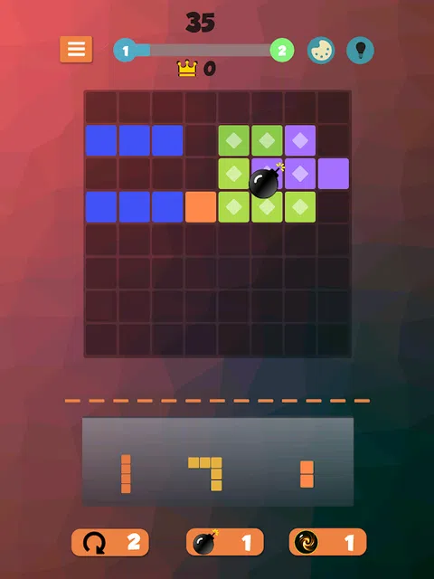 简单的游戏规则,放下碎片填补线条。在填充垂直或水平线后,它将消失,为新部件释放空间。当没有更多的空间来填补时,游戏将结束。 适合所有年龄段的易玩和令人上瘾的益智游戏