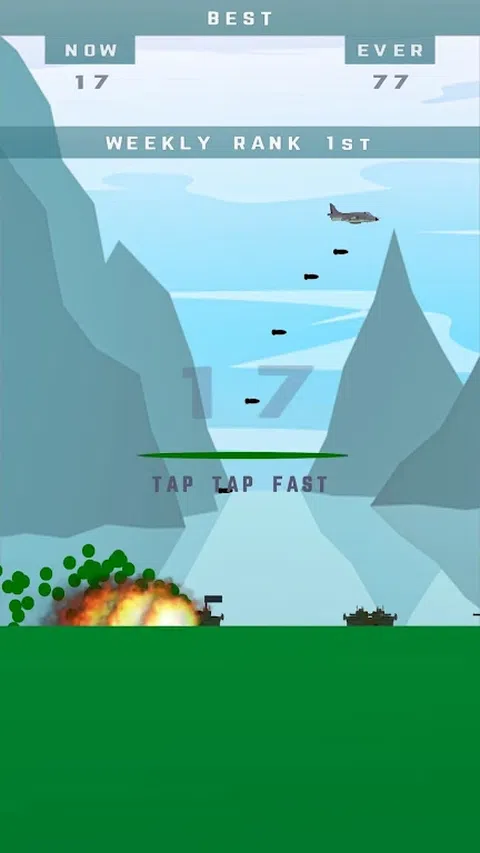 一个会让你大吃一惊的小型轰炸游戏。 您只需要在正确的时间点按一下,即可将炸弹从战斗机上扔到移动的坦克上。 每次正确击中都会为您赢得一分,而每次未命中都会使您的分数归零。 很少有坦克上面有旗帜,如果这样的坦克被击中,你将获得几秒钟的免疫力,这使你能够尽可能快地继续轰炸而不用担心分数归零。 快乐轰炸