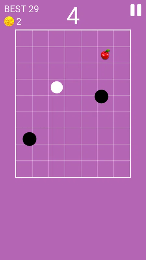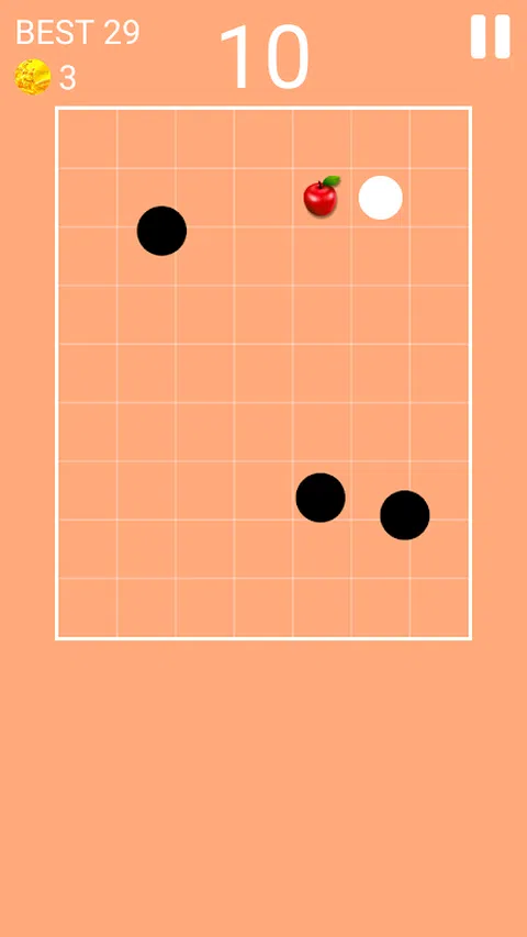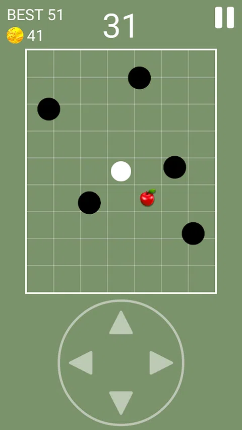 这是一个简单的游戏。避开黑色敌人并获得苹果或黄金 敌人不断沿对角线移动。随着等级的提高,敌人的数量或敌人的速度增加 有滑动模式和按钮模式。您可以向左、向右、向上和向下移动。 有趣的游戏,好的游戏,集中的游戏,痴呆症预防游戏,有用的游戏,回避游戏,回避游戏 男人、女人和孩子!一起享受吧