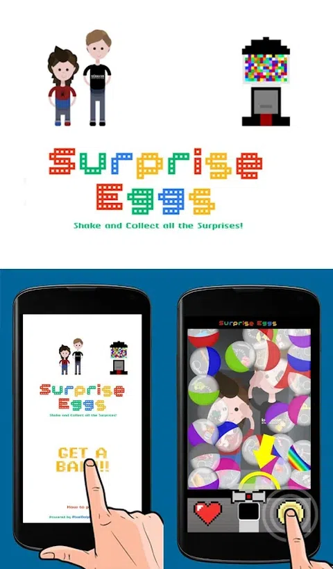 惊喜蛋安卓应用游戏终于来了! 许多球充满惊喜。摇动你的手机,拿走你最喜欢的球。 惊喜蛋是让您的孩子开心和惊喜的最佳应用程序。 惊喜蛋是一款致力于让孩子发现许多惊喜、玩具和乐趣的应用程序。 你可以找到: * 玩具 * 公主 * 惊喜 * 玩具动物 * 汽车惊喜 怎么玩: 1. 摇动手机并尝试接住您喜欢的球 2. 投入硬币 3. 获得惊喜 在应用程序中您会发现 25 种不同的惊喜。 让我们一起去收集所有的惊喜吧