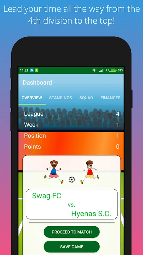 Simple FC Manager 是一款免费的休闲足球管理游戏。 你将让你的球队进入第四级别,并带领他们进入第一级别! 主要特点: - 完全免费; - 无广告; - 以纵向模式玩; - 定制培训; - 比赛期间实时改变战术; - 比赛在 1 分 30 分钟内快速进行或 - 真实 90 分钟模式 - 在真实 90 分钟内进行游戏并接收通知; 我们请求互联网访问权限,以便接收有关发生的任何崩溃的日志并发布更快的修复程序。 有以下语言版本: - 英语() - 葡萄牙语(PT) 您想帮忙翻译该应用程序吗?联络我