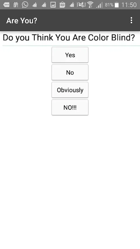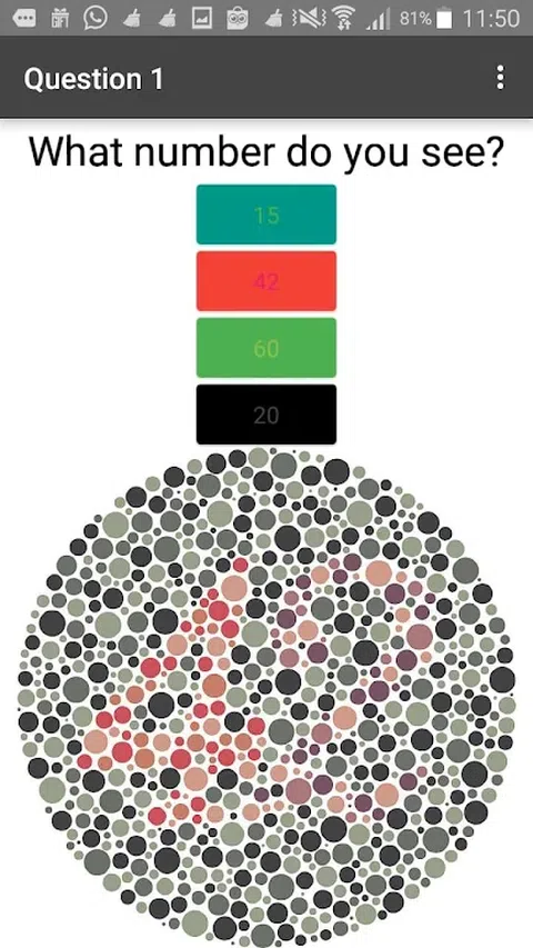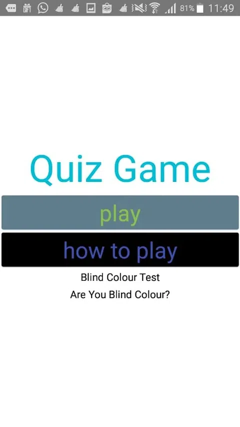 我们创建的游戏叫做“盲色测试” 好处是证明你是不是色盲? 好处是这个游戏可以证明你是不是色盲 玩法是先看图,然后回答正确答案,如果错了就有可能是色盲