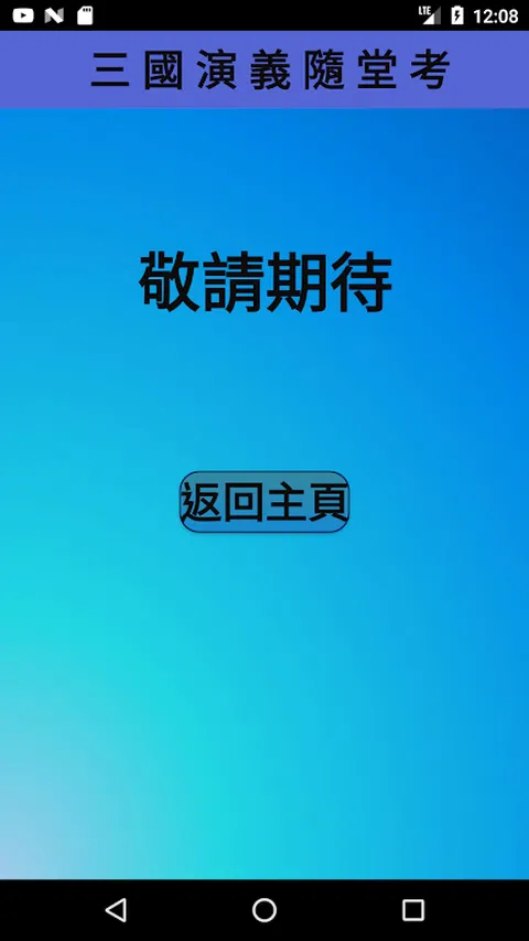 三国演义随堂考 目的在于寓教于乐,三国迷可以来挑战看看唷 目前分为简单、普通、困难等级, 日后还会继续更新更多题目,来让大家游玩 如有任何操作上的问题,或是给予建议, 都欢迎寄信我喔,谢谢