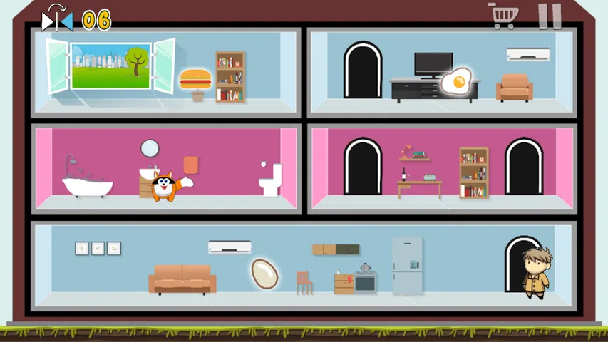 Flip The Cat 的任务是获取每个关卡中可用的食物。为了吃掉这些食物,猫具备了在房间里翻来覆去的能力