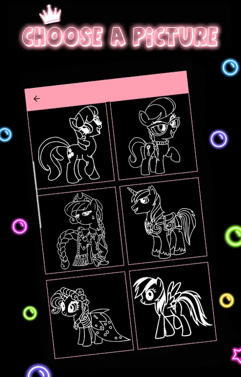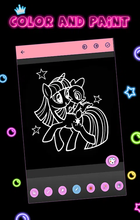 “Draw and Color Glow Little Pony”是一款逼真的填色游戏,拥有 50 多张小马世界的图片。 填色本中包含各种小马驹角色,既可以培养色彩感,又可以放松身心。它可以随时随地轻松播放。 * 特征 : - 用发光刷绘制 - 给你最喜欢的卡通涂色 - 更多选择 - 许多工具和功能(发光的星星、发光的皇冠、发光的蝴蝶。) - 不同的玩法:学习绘画和着色 - 与朋友分享您的作品。