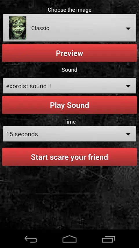 吓唬你的朋友应用程序真的很有趣,通过这个应用程序你可以吓唬你的朋友。 当你的朋友使用你的手机时,会突然出现恐怖的画面,并伴有恐怖的声音。 你只需要 3 个简单的步骤就可以欺骗你的朋友: 1.选择一张恐怖的图片。 2. 选择一种可怕的声音。 3. 设定您想吓唬朋友的时间。 把你的手机给你的朋友玩。设定的时间过后,恐怖的画面和恐怖的声音将会吓到你的朋友。 吓唬你,震惊你你的朋友