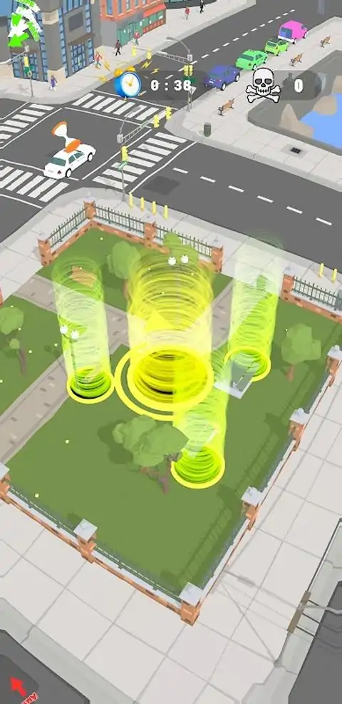 控制风暴, 摆脱竞争对手的风暴, 将风暴聚集的房屋、汽车等物品拉入黑洞, 让风暴更大, 并将整个城市拉入风暴