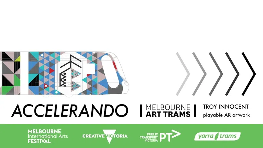 Accelerando 使墨尔本的其中一辆电车具有可玩性 - 从字面上看。虽然电车上的几何图像本身就是一件艺术品,但当通过手机摄像头查看经过的电车时,增强现实应用程序会显示另一层动画和声音。当它检测到设计片段时,它会播放由应用程序生成的乐谱