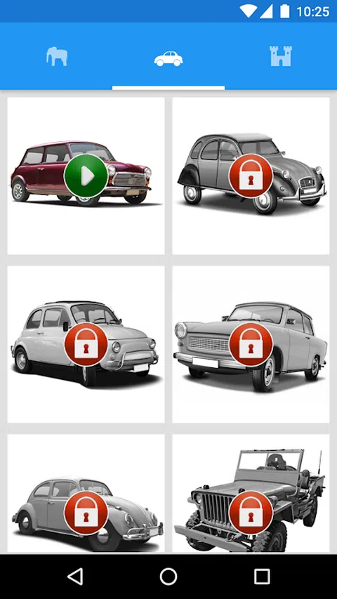 嗨,这是我的第二个游戏 - Puzzle! 滑动瓷砖并构建图片。分为三类: - 动物 - 汽车 - 城堡 。 祝你玩得开心