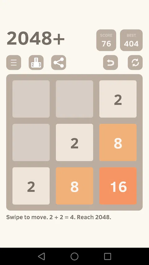 2048年游戏是一个有趣的简单且令人上瘾的数字益智游戏。该应用程序是2048年流行游戏的升级版本。 滑动手指,加入数字并获得2147483648瓷砖! 怎么玩:们合并成一个。 2+2 = 4,4+4 = 8,8+8 = 16,。,1024+1024 =2048。创建2048瓷砖时,您会赢! 当然,当您获得2048年时,您可以选择继续玩此游戏至2147483648瓷砖! 支持更多游戏模式: 1. 3x3 2. 4x4(默认) 3. 5x5 4. 6x6 5. 7x7 6. 8x8 支持自动保存。 支持撤消。 共享和评分应用程序。 2048具有清晰而简单的UI,美丽的动画效果。开始玩这款2048游戏,与您的朋友竞争,看看谁获得最高分。 享受2048益智游戏,玩得开心