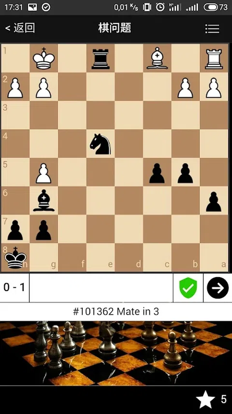 国际象棋的题册可提供层次不同的战术题目。 解答题目有利于提升自己的象棋技能。 国际象棋的题库不断在更新补充。 应用可以线下使用(下载题库以后无需联网)
