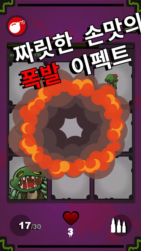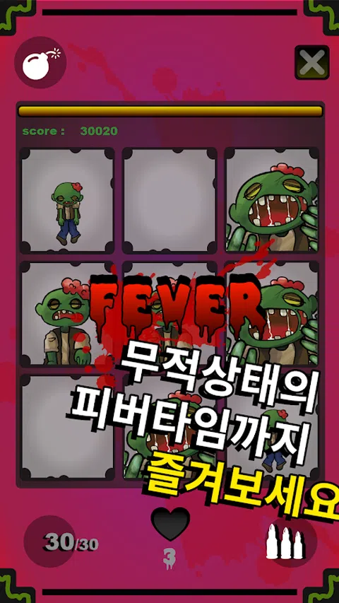 Zombie Terminator是一款休闲防御游戏,可以防止僵尸聚集来抓住你。在你有限的生命中尽可能多的僵尸,并成为最佳射手! ◈阻止僵尸! 触摸即将到来的僵尸攻击。 如果你无法阻止它,你将受到僵尸的攻击,你的生命将会筋疲力尽。 ◈检查你的弹药! 加载后,可用的子弹数量有限。 重装时,变得手无寸铁, 考虑子弹的数量和剩余僵尸的数量! ◈试试炸弹! 在紧急情况下,使用你的炸弹炸毁所有的僵尸! 炸弹有时是从特殊的僵尸中获得的。 ◈使用Fever获得高分! 每当你抓到一个僵尸,你可以一点一点地填充它。 僵尸涌出发烧状态, 即使受到攻击,生活也不会疲惫不堪。 当你处于发烧状态时,点击屏幕获得高分! 这是BCSD实验室的第一部作品。 我们仍然有很多不足之处,但我们会通过更新来改进。 感谢您发送任何问题或错误报告的