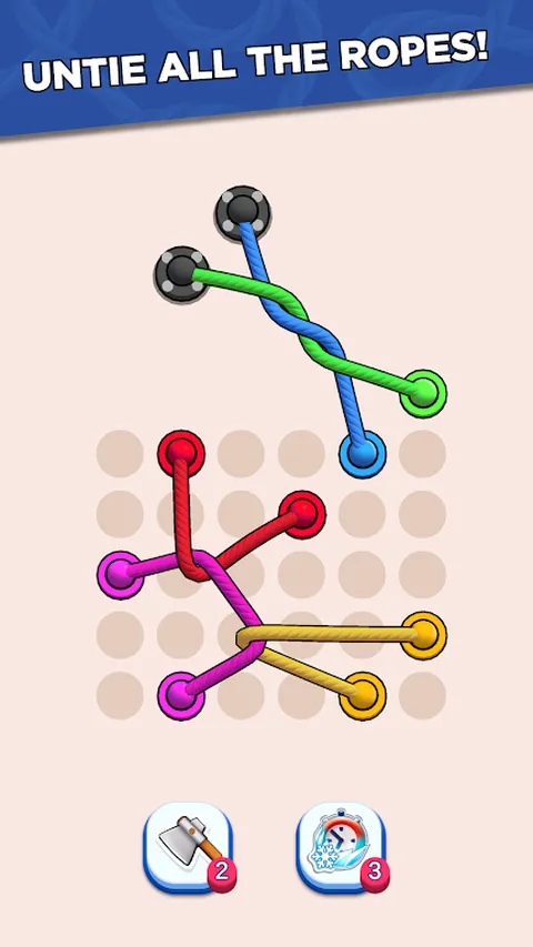 在这个益智游戏中挑战您的解结技巧! 潜入有趣而轻松的 3D 拼图世界,在这里您必须解开绳结并解决大脑训练的纠结。 凭借灵敏的控制和灵活的游戏玩法,Twisted Ropes