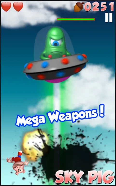 一些不知名的外星人偷走了地球上所有的橡子,看来他们的星球很珍贵!所以现在“小猪”一只粉红色的小猪飞来回收所有的橡子,打败邪恶的外星人,带回和平。 有四个不同的世界,有四个大型外星人首领需要击败,您所要做的就是:抓住您的设备左右移动小猪,以避免外星人吐出的物体,但不要忘记拿走橡子,并用手指触摸外星人首领以将其摧毁。 试试天空猪