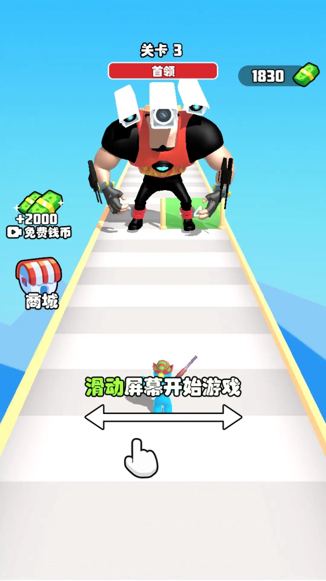 玩家需要滑动屏幕控制战士左右移动,通过玩家控制的战士对怪物进行射击,通过拾取不同的道具和解救道路中的小战士获得更强的战斗力,同时躲避怪物在道路中设下的障碍,击败怪物获得丰厚的奖励。