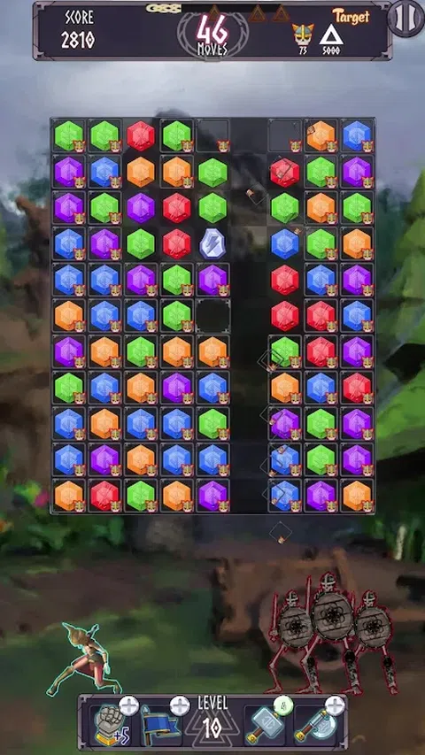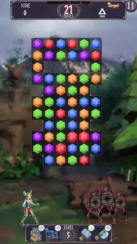 作为女武神踏上史诗般的旅程,保卫九大王国免受不死族的侵害!在 Valkyrie Match3 中,通过匹配宝石并在 100 多个具有挑战性的关卡中粉碎敌人,释放您的力量。拥有多种游戏模式、令人惊叹的探索区域和强大的技能供您使用,您将需要所有的智慧和策略来征服黑暗。通过关卡并击败强敌,成为终极女武神。你准备好崛起并保护王国了吗? 立即下载《女武神三消》,加入战斗吧