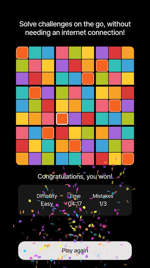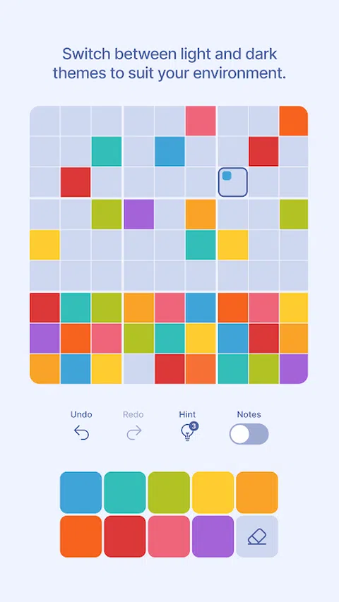 沉浸在 Sudok-Hue 丰富多彩的挑战中: 体验用 Sudok-Hue 重新构想的数独 - 鲜艳的色彩取代了数字,每个谜题都成为视觉杰作。这款游戏非常适合设计爱好者、艺术家和色彩爱好者,将复杂的问题解决与令人惊叹的美学相结合,提供一种新鲜而引人入胜的方式来挑战您的思维。 特点: - 创新的游戏玩法:通过放置颜色而不是数字,以前所未有的方式体验数独。每个谜题都是画布,每个解决方案都是杰作。 - 各种难度级别:从简单的谜题到专家挑战,找到适合每种心情和技能水平的完美数独网格。 - 时尚的设计:享受视觉上引人注目的直观界面,增强您的解谜体验,让每次游戏都充满乐趣。 - 卡住的提示:需要朝正确的方向轻推?使用我们的提示在特别具有挑战性的谜题中导航,而不会失去您的流程。 更多功能: - 外观:在明暗主题之间切换,以适应您的游戏环境和个人喜好。 - 离线游戏:随时随地享受丰富多彩的拼图,无需互联网连接。 - 自动保存:永远不会丢失您的位置 - 您当前的游戏始终保存在您的设备上,因此您可以从上次中断的地方继续。 - 草稿模式:直接在游戏中做笔记,以帮助您在解决每个谜题时跟踪您的想法和策略。 - 自动候选:通过“自动候选”立即发现所有可能的颜色 与 Sudok-Hue 一起进入充满活力的拼图世界,将您的色彩专业知识进行终极测试