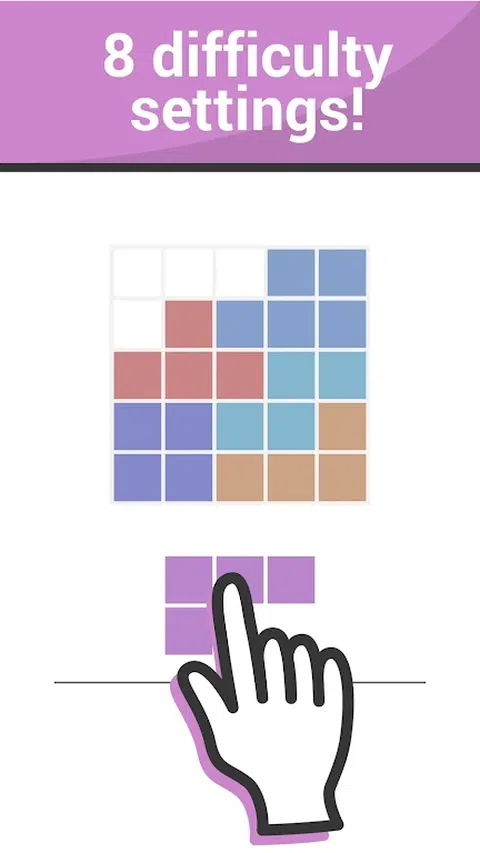 Piece Together 是一款基于关卡的益智游戏,玩家面临的挑战是将一组形状放入网格中。拥有各种难度的大量关卡,各个年龄段和技能水平的玩家都可以享受游戏的乐趣。 怎么玩: - 拖动方块来移动它们。 - 将它们全部放入网格中即可获胜。 - 方块不能旋转。 特征: - 750 个免费关卡,5 个不同的难度。 - 450 个专家级别,适合想要额外挑战的玩家。 - 游戏时间。 - 手机和平板电脑支持