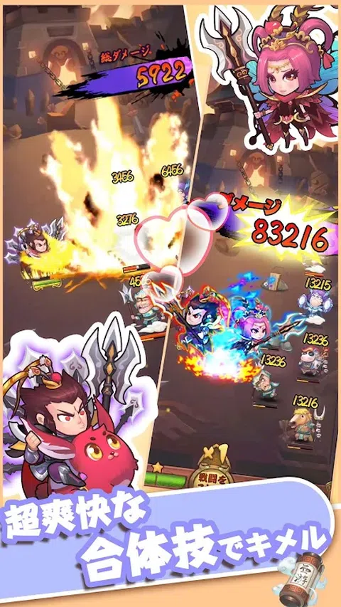 “集结三界六路英雄,横冲直撞!实时战斗乱斗!” ◆ 充分利用自己培养的英雄,与全国用户进行PVP! 从众多英雄中进化出你最喜欢的英雄,自由组织并赢得 PVP! 除了英雄之外,还可以组织魔宠支援英雄! ◆不自觉大笑的“组合技”造成大量伤害! 还有一个可以通过组合英雄来激活的组合技能,因此尝试各种角色组合将是胜利的关键!漫画英雄在你的手掌中横冲直撞! ◆《三国演义》、《西游记》、《宝信演义》中出现的英雄们陷入了一场大乱斗! “悟空和卡努谁更强?” 我们来对比一下最终能够同线较量的两人。 除了普通关卡外,你培养的英雄还可以在“服务器间的战斗”、“神殿的毁灭”、“体育场”、“关西台”、“朋友合作地下城”中发挥作用》、《世界Boss》、《武林大会》、《冠军试炼》等,可以,你可以自己玩