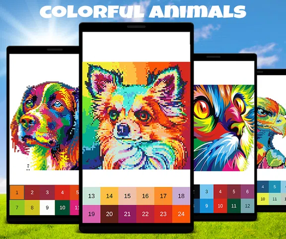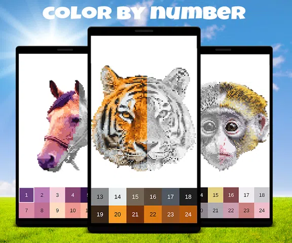 像虎狮和狼这样的动物像素艺术游戏:按数字着色像素并画出狗和猫等可爱的动物。 享受像素绘制效果并享受色彩缤纷的动物和老虎像素艺术的乐趣