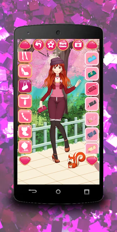 训练你的服装技能,为卡通人物穿上漂亮的衣服,并在华丽的沙龙中打造出色的妆容和发型。 所有滑稽的赤壁公主和萌高中女生的御宅族都会喜欢熟悉的女学生短裙造型。除了传统的水手过分校服外,还有各种各样适合年轻女士的时尚单品:高跟鞋、西装、衣服、裤子、短裤、裙子。作为奖励,还有 25 种可爱的宠物(猫、狗、兔子和松鼠)。游戏中的一切都是休闲的:没有应用内购买、锁定或技巧