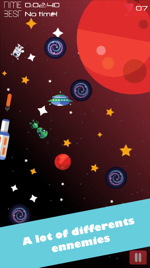 引力是一种技巧和重力游戏,你必须帮助鲍勃宇航员营救这是失去了在深空他的外星人最好的朋友。要做到这一点,你必须通过黑洞物理的力量来使用。 这个游戏的主要特点是,你不直接控制你的性格。你必须移动鲍勃空间的唯一途径是通过激活/停用他们在正确的时间将他通过正确的方向上使用黑洞的引力。因此,让我们用物理学来帮助鲍勃玩! 但要小心,很多陷阱是在你的空间的道路: - 小行星 - 行星 - 激光器 - 当然,物理,空间和黑洞引力并不总是你最好的盟友,甚至是你的外星人最好的朋友:) - 和很多人一样希望看到你在太空中失去了,所以要熟练! 在别人的话,你必须使用黑洞的物理特性,避免陷阱,而不是迷失在太空中。 除了黑洞重力,鲍勃航天员可以使用电源UPS,以帮助你。 此外,您与谷歌播放世界hiscore和超过10的成绩最好的朋友竞争! 最后,你每天都会有新的礼物。 试试吧,你会爱上它! 产品特点: - 30真正具有挑战性的水平(与更多的惊喜.) - 3种不同的世界(空间,更多) - 许多敌人完全不同的行为(UFO,激光,小行星.) - 电冻结你的敌人,以节省您的外星朋友 - 通过黑洞激活移动鲍勃宇航员 - 基于物理游戏 - 生命充值系统一次又一次地玩 - 3星每个级别解锁 - 尝试击败你的最好成绩! - 让嫉妒与世界排行榜上谷歌发挥你最好的朋友 - 在谷歌多打10的成绩 - 每日礼品 - 真的生气蓬勃的宇宙 - 一个20秒教程来学习如何玩 - 更多的惊喜很多来. 它从来没有这么开心与物理玩拯救外星人在太空中