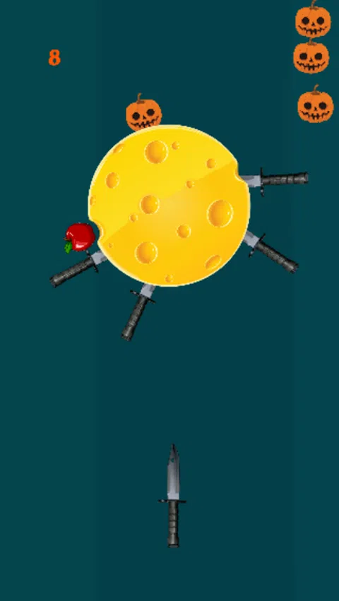 将刀具扔进旋转的原木中,这样您就可以进入下一个级别。切万圣节南瓜和苹果。 是时候下载这个免费的有趣游戏了,首先磨刀并击中目标得分并进入下一关。 让刀击中目标,与朋友一起度过愉快的假期