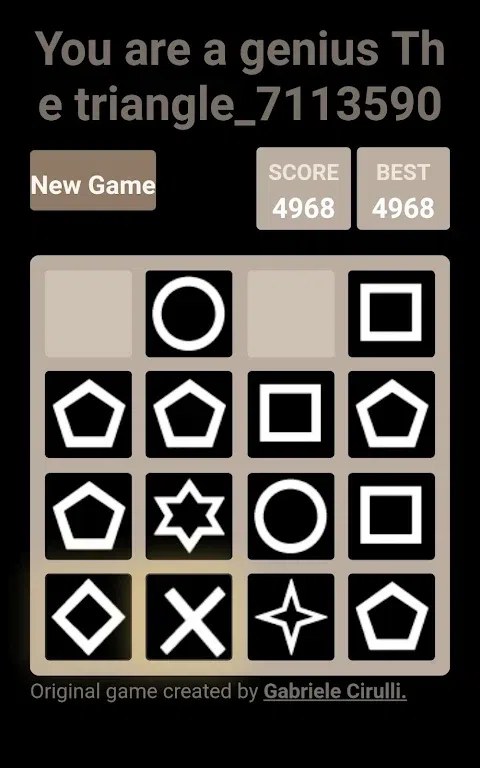 你是个天才?证明给我看!组合相同的图形生成其他图形,直到得到三角形。 滑动合并图片,滑动时所有图片都被推向滑动的方向,相同的图片碰撞形成新的图片。运行滑动并使图片碰撞,直到你得到一个三角形。看起来容易吗?它不会!尝试一下