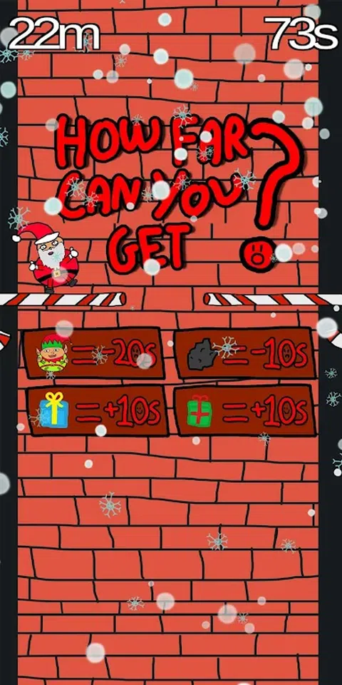 在 gamejam 期间制作的圣诞游戏。扮演圣诞老人,滚下烟囱!看看在时间用完之前你能走多远! 只需在 Unity 中花费几个小时,在 Paint 中花费几分钟,我们就拥有了这个宏伟的作品! 享受