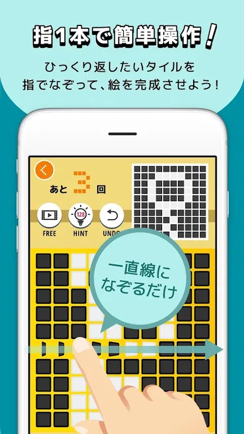 ■概述 FlipFlick“翻转轻弹”是, 在一条直线上追踪面板的唯一操作方便免费的益智游戏。 因为一个问题1纪录,如任何玩简单的拼图,大脑训练可以享受通勤时间和空闲时间一点点,比如睡前。 ■规则 规则很简单。 面板轻弹(跟踪)是唯一的简单的益智游戏。 由于轻拂面板由直线倒立,请完成数字作为答案。已完成的拼图将颜色的点图像。 由于时间限制是不 按照自己的步调请仔细欣赏的难题。 ■小贴士 困难和无法解决的问题,请大家提示的优势。 ■阶段 问题的数量,我们已经提供了约400个问题。 动物,食物的品种和体育 我们已经准备了很多有趣的问题。 儿童,妇女,男人,快来高级,玩它,因为在大家的乐趣,请尝试挑战。 应该肯定的成瘾之谜的新感觉。 益智游戏,大脑被激活 它也说是工作效率并延缓衰老。 请尝试每天玩的时候是好的