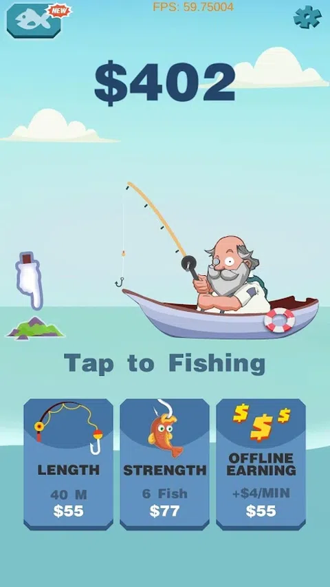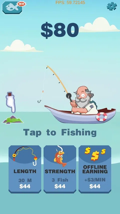 这是一款好玩的钓鱼游戏,请耐心等待5分钟,发现他的乐趣,不断挑战最高分