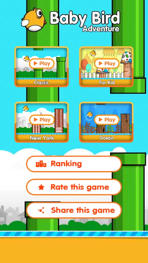 *新的惊人的小鸟游戏* 用 4 个新的冒险主题挑战自己:经典、纽约、海洋和儿童仙境。 点击拍动小鸟的翅膀,飞行或潜水,立即下载,享受小鸟的冒险之旅