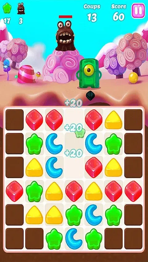 但不用担心!如果您无法在手头的移动数量内完成关卡目标,您可以随时选择使用您收集的奖励积分购买更多移动。 在五十个越来越困难的关卡中,您将与想要偷走您的糖果并保护糖果的怪物进行一场精彩的战斗。立即玩 Best Candy Friends 免费享用这些糖果
