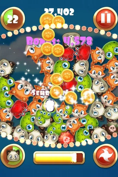 宠物们正在这个全新的丰富多彩的动态连接线游戏中接管!您必须将宠物与同等的宠物连续连接,这样做会使它们爆炸成您必须收集的数十个硬币。 在进入每个级别之前选择你的助推器,然后你就会进入弹出宠物的狂潮