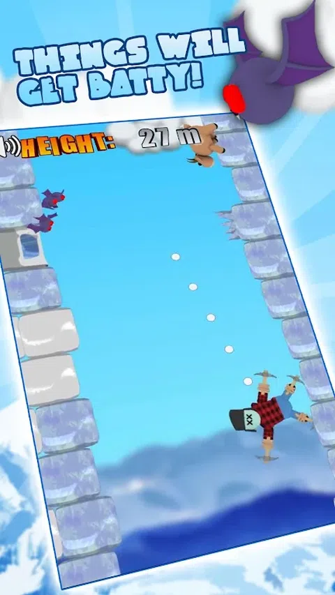 著名登山家考克福斯特勋爵去世了,但这不会阻止他攀登! 将他抛向天空,达到他活着时永远无法达到的新高度! 镐子绑在他的胳膊和腿上,所以他会自己粘在墙上,你只需要推他一下! - 避免蝙蝠和鸟类! - 道奇尖刺! - 小心滑冰! - 打破你自己的记录! 的部分是什么?喜马拉雅的周末是完全免费的
