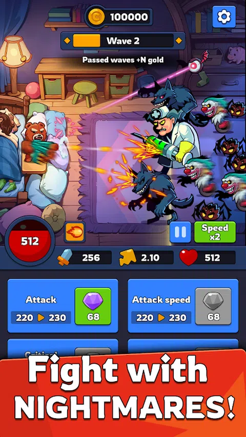 当灯光熄灭,阴影悄然而至时,勇敢的玩具们站岗守护,保护他们心爱的孩子免遭恶梦的侵袭。作为英勇的毛绒防御者,用玩具机枪武装自己,面对噩梦。你是甜美梦境和夜晚恐怖之间的最后一道防线!? 在这款放置塔防游戏中,您将建造塔楼,利用灵活的升级系统,选择您的武器和盔甲,利用强大的技能,并参与史诗般的战斗,对抗一波又一波的活生生的噩梦! = 游戏特色 = ? 自动战斗游戏。只需一根手指即可控制游戏,体验闲置点击游戏的风格—英雄们独自战斗,而您则增强他们的能力! ? 史诗般的战斗。击败一波又一波的蜘蛛、邪恶的小丑、怪异的医生和具有不同攻击类型的强大首领。 ?灵活的策略。升级塔楼和技能,使用法术,召唤盟友—找到自己的策略! ? Roguelike 和 RPG 元素。为每次失败赚取资源,升级你的技能,并比以往更强大地重返战斗。 ? 超棒的英雄。解锁具有独特能力的勇敢英雄,例如玩具士兵、仙女娃娃或战斗变形金刚。 ? 武器和神器。收集武器、盔甲和稀有神器来增强你的力量。 ? 各种地点。穿越阴暗、疯狂、离奇和噩梦世界的其他土地。 ? 挑战和 PvP。参加锦标赛,提升排名,并通过与其他玩家竞争来证明自己的技能! ? 公会和交流。加入社区,完成合作任务,结交世界各地的新朋友。 ? 多样的游戏模式。一波又一波的敌军冲锋、基地攻占、Roguelike、资源管理、城堡建造和迷你游戏—告别单调和无聊! ? 礼物和奖励。通过登录、完成任务、观看广告等赚取奖励! ? 彩色图形。让自己沉浸在一个拥有令人惊叹的图形和令人毛骨悚然的氛围的奇异世界中。 开始你的旅程,成为梦想的最佳守护者! 你准备好接受挑战,将噩梦拒之门外,直到黎明吗?立即下载“梦想守护者”,开始你的史诗冒险