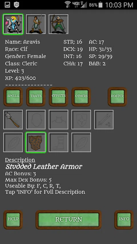 Lanterna - The Exile(IceBlink 引擎角色扮演游戏) slowdive_fan 和 Bree Arts 的故事、音乐和大部分艺术作品 IceBlink 引擎和由 slowdive_fan(又名我)移植到 Android 特征: - 专为手机设计,但在平板电脑上可以很好地扩展(我有一个 galaxy tab 3 8")。 - 价格低廉,无广告,无应用内购买。 - 伟大的角色扮演故事讲述对话系统。 - 单人角色扮演游戏(你控制所有党员)游戏。 - 很多可重玩性(这是一个词吗?)。 - 三个种族、四个职业和许多法术可供选择。 - 可以进行多次保存(经常保存)。 - 有很多物品可供寻找和使用。 - 这是一个短篇小说(2-4 小时)所以,是的,它很短。这是对 Lanterna 设置的介绍,并将进入该系列的下一个冒险模块,Lanterna 2,它更大(10-15 小时)。 进度报告功能: 一种有趣的新方式,可以通过与他人分享您的游戏体验。 主地图屏幕上有一个标记为“PR”的切换按钮(右下角切换按钮)。按下此按钮将打开和关闭进度报告。如果您不想分享您的游戏体验,没问题,只需关闭进度报告即可。如果您确实希望分享,请打开“PR”按钮。如果进度报告开启,那么在一些里程碑事件中,它会将你方的当前统计数据发送到我们的 Google Analytics 仪表板。我会将进度报告列表发布到我们的论坛(请参阅下面的网站链接),供其他人分享经验。不会收集任何个人身份信息,只会收集有关您的聚会的信息。将您的进度报告与其他报告区分开来的标签是您的主 PC 的名称。我们很高兴看到其他人如何享受我们的冒险故事,所以我们希望您也喜欢这个新功能。 Lanterna - 流放冒险模块描述: “自从 Elos 带领你们的人民来到这个新的 Charn 世界以来,已经过去了将近 272 年。和平与发展统治了很多年,直到最近。你们一直自从你父母失踪后,就一直照顾你的妹妹。你在码头工作,帮助装卸船只。这一天似乎很顺利,直到你被法官达林的消息安迪打断。你姐姐被绑架了。 你的主要任务是找到你的妹妹并解救她。” Lanterna - The Exile 最初由 slowdive_fan(我)为无冬之夜 1 (NWN)、NWN2 和 IceBlink 引擎 (IB) 创建。我将 IB 引擎(我为 PC 创建的原始引擎和工具集)移植到 Android,并将 Raventhal 和现在的 Lanterna - The Exile 冒险模块从 PC 版本转换为 Android。 IceBlink 引擎的灵感来自于我最喜欢的一些 cRPG(许多是旧式复古风格的 RPG),例如 SSI Gold Box Games、原始的 Bard's Tale、Ultima 和 Infinity Engine 游戏(例如 Baldur's Gate 和 Icewind Dale)以及我的 6+多年在无冬之夜 1 和 2 中构建冒险模块的经验