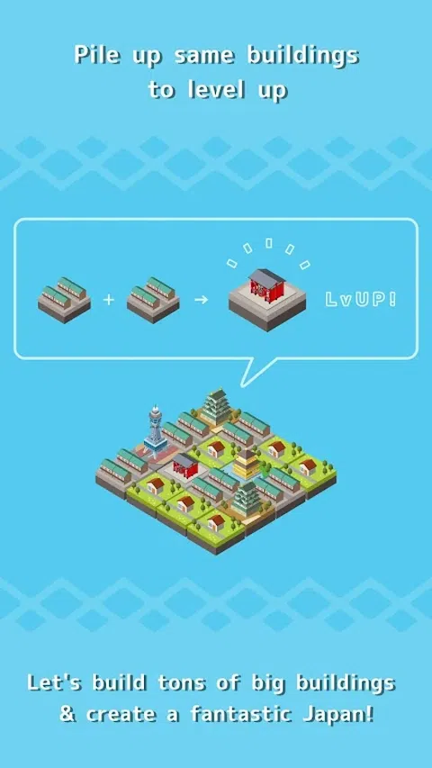 吸引众多粉丝的《东京创客》第二弹! ? 通过城市规划和谜题创造你自己的! 一种新型城市建设益智游戏,您可以在解决谜题的同时创建一座城市。 ◆玩法 滑动手指,移动建筑物! 合并相似的建筑物以创建新的建筑物