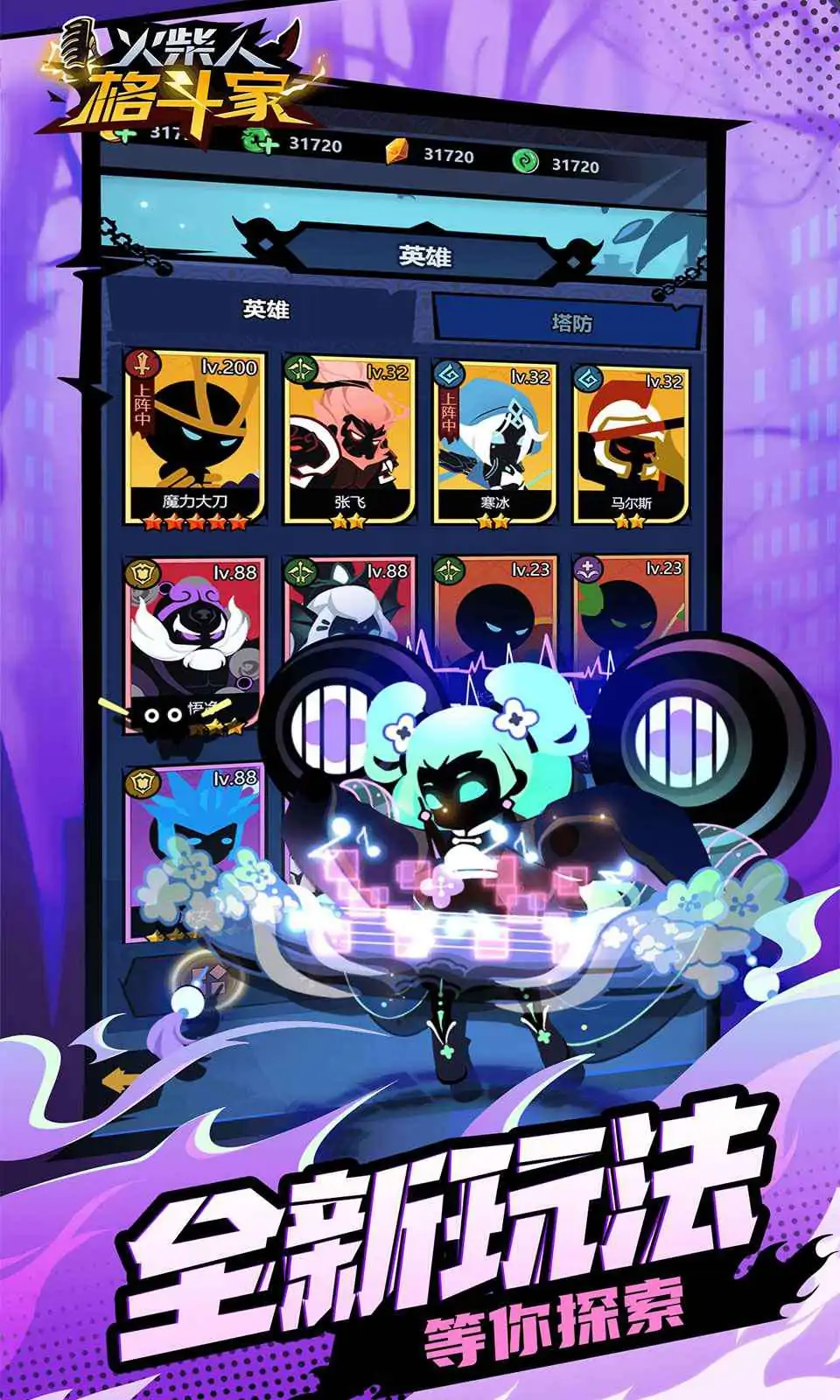 火柴人英雄大乱斗,争夺最强火柴人 《火柴人格斗家》是一款火柴人风格卡牌挂机养成游戏。 游戏主要分为五个职业:坦克,战士,射手,法师,辅助 玩家最多可上阵五名英雄与敌人战斗 每个英雄都有自己专属的用处,鼓励玩家尝试更多英雄搭配 核心玩法: 1.主要玩法为PVE闯关,玩家可以上阵五名英雄与关卡中的敌方五名英雄进行战斗,战胜即可获得丰厚奖励,通关章节更可以获得专属的通关奖励。 2.通过关卡即可解锁挂机收益,根据玩家挂机时长,来领取丰厚的奖励,用于提升英雄。 3.PVP玩家对战争夺最强称号 卡牌养成: 玩家可以通过升级,升星,转职来提升英雄们的战力 提升英雄星级,可以解锁更加强力的技能 英雄转职可以获得大量属性,同时也可以解锁全新英雄天赋