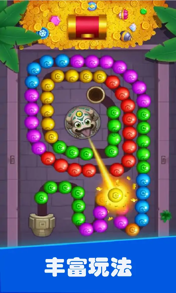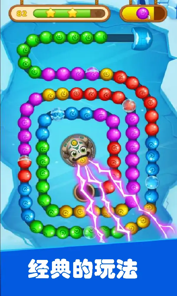 一款以经典的射击游戏。它很容易玩,但确实令人上瘾。 您的目标是在所有弹珠到达路径尽头之前清除所有弹珠,同时尽可能多地实现弹珠和连击,以获得最高分。 特点: 酷炫的强大物品,如炸弹、彩球、陨石雨 好的艺术,好的音乐,好的动画效果。 冰冻石、彩虹石、炸弹和许多有趣的道具等待您在弹珠射击中探索,此游戏包含原始系列的游戏玩法 使用射击组合在闪电穿过的路上炸开所有弹珠 有吸引力的道具 - 提供闪电球、多色球和更多有趣的道具