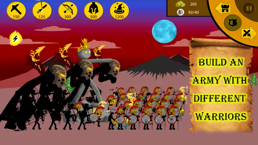 火柴人大战(Stickman war)-具有最佳策略游戏玩法的惊人而令人上瘾的火柴人大战(stick war)手机游戏。这是最新的火柴人游戏,与其他火柴人游戏的战争年代或火柴人时代不同。▼简介:火柴人战争是一款非常有趣且有吸引力的战争游戏。玩家将进行火柴人大战。与军团僵尸战斗。在强大的火柴人超级英雄锦标赛中玩游戏使用您的战争策略来接管他们的地位▼如何玩火柴人之战2020:+如何玩火柴人游戏非常简单+单击火柴人以召唤他加入火柴人战争+玩家用Joystic控制火柴人来移动和攻击敌人+您必须通过开采金币来升级军队,+提高火柴人的技能和武器,或使用额外的工具来击败敌人的火柴人。 +摧毁对立国家的雕像,这些雕像运用了棍子人物的策略和魔法力量:矿工,剑,矛,弓箭手,巫师,甚至是巨人。 +摧毁敌人的所有军队以占领领土,从而完成游戏。 ▼产品特点:+完全免费+离线游戏,无需网络,无需移动数据