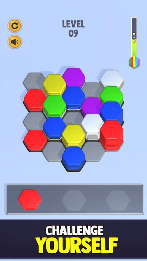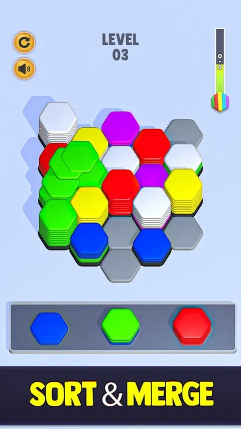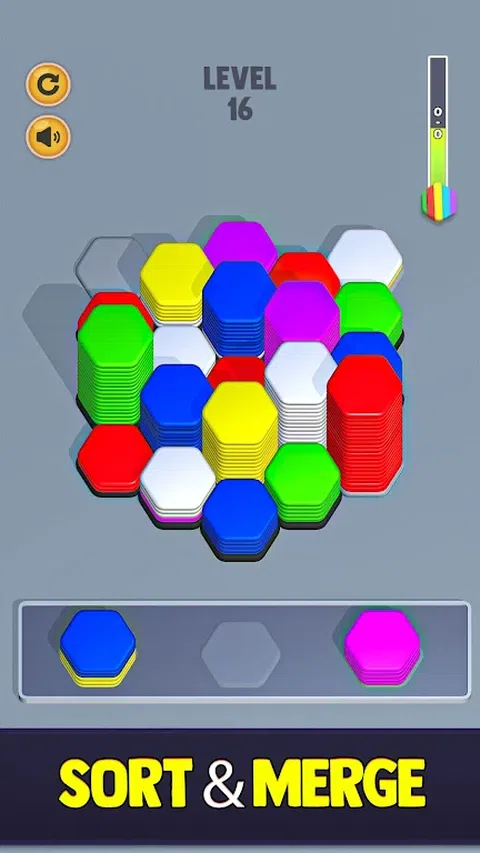 准备好迎接令人上瘾的六角颜色分类块拼图挑战!通过这个激动人心的合并益智冒险,让自己沉浸在令人上瘾的排序世界中。在 Hexa Sort 中,您将踏上一段考验您的技能和战略思维的旅程。 在这个 3D 拼图分类游戏中,您将遇到以六角形堆叠的充满活力的彩色图块阵列。您的任务是合并并排序这些六边形块,以创建和谐的色谱。每次移动时,您都必须仔细规划您的策略,以有效地匹配和组合六边形方块。Hexa Color Sort Blocks Puzzle(六边形颜色分类块拼图)凭借其身临其境的 3D 图形和具有挑战性的游戏玩法,为传统分类游戏提供了独特的转折。随着关卡的推进,你会遇到越来越复杂的谜题,将你的分类技能推向极限。凭借其迷人的游戏玩法和无尽的分类可能性,六边形颜色分类块拼图是六边形、排序、拼图、合并和 3D 游戏爱好者的终极选择。 你的任务是匹配颜色、排序形状和合并图案。凭借其直观的机制和轻松的游戏玩法。通过 Hexa Color Sort Games Puzzle 3d - Hexa Merge Sort Master 3d Hexa Sort Hexa Puzzle 3d Sorting Challenge 潜入迷人的颜色匹配和排序谜题的世界。 探索迷人的六边形棋盘,踏上洗牌、排序和合并多彩六边形的旅程。凭借其简单而具有挑战性的游戏玩法,Hexa Sort 已迅速成为排序游戏类型中的顶级游戏之一。在这个轻松排序谜题的每个关卡中放松身心,每一步都很重要。在这个令人上瘾的六边形益智游戏中,体验完成每个级别并掌握分类艺术的快感。准备好沉浸在 Hexa Sort 的世界中,彩色六边形等待着您的战略触摸!你准备好成为终极六角分类大师了吗?立即潜入 Hexa Color Sort Games Puzzle 3D 的世界,释放你的分类能力