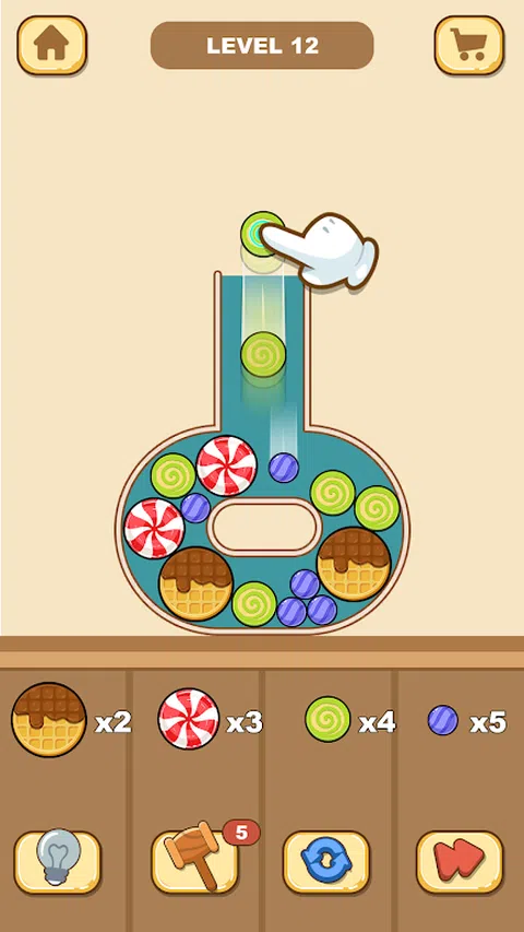 在这款引人入胜的移动益智游戏中,用不同大小的彩色糖果装满瓶子!您的任务是有策略地将各种形状和大小的糖果放入瓶子中,确保它们完美贴合而不会溢出。每个级别都会带来新的挑战,需要仔细计划和快速思考,因为糖果会翻滚并安顿到位。该游戏提供了乐趣和挑战的令人愉快的组合,具有充满活力的视觉效果和令人满意的物理效果,使每个级别都成为一种享受。随着您的进步,谜题变得越来越复杂,引入了新的瓶子形状和糖果类型,以保持游戏玩法的新鲜感和刺激性。 直观的触摸控制使上手和游戏变得容易,而越来越棘手的关卡会让你流连忘返。无论您的目标是完美填满糖果,还是只是享受观看糖果落入适当位置的过程,这款游戏都能为每个人提供一些东西。随着你的进步解锁新的关卡和瓶子,挑战自己以获得最高分。凭借其迷人的设计和令人上瘾的游戏玩法,这款移动益智游戏非常适合所有年龄段的喜欢脑筋急转弯的玩家。 立即下载,开始用甜美多彩的糖果装满这些瓶子