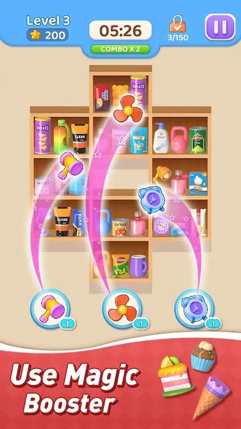 你将帮助卖家对货架上的商品进行分类。它将挑战您的眼力和脑力!在产品分类中,你不仅可以体验超市购物的乐趣,还可以缓解压力,享受分类产品的乐趣! 怎么玩 1. 将三个相同的产品放在同一个超市货架上。 2. 排序并清除三个相同的产品,然后货架后面的产品将出现。 3. 继续分类,直到所有架子都空了。 4.只有在有限的时间内完成游戏才能获胜。 游戏特色 免费玩:自由地享受游戏! 没有 Wi-Fi 限制:没有网络限制,您可以随时随地玩游戏。 无尽关卡:多个关卡,随时排序产品! 难度模式:难度递增,快来挑战自我吧