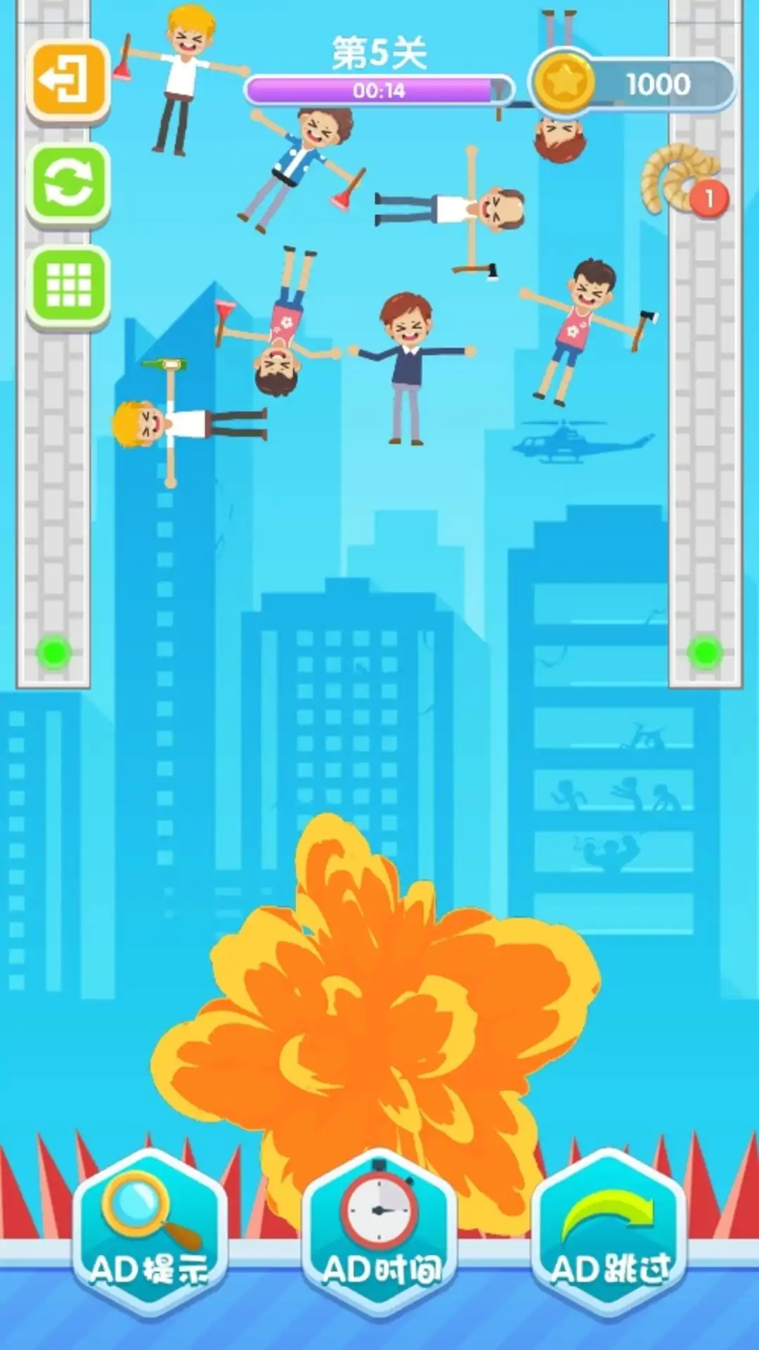 一款休闲类小游戏,故事发生在一个架空的时机,人类遭到了小怪兽的袭击,玩家将扮演救生员,拯救坠落的普通人,同时消灭周围的小怪兽。滑动屏幕连接两个点,就能组成一条绳索,玩家需要保护人们不受伤害,并消灭周围的小怪兽。
