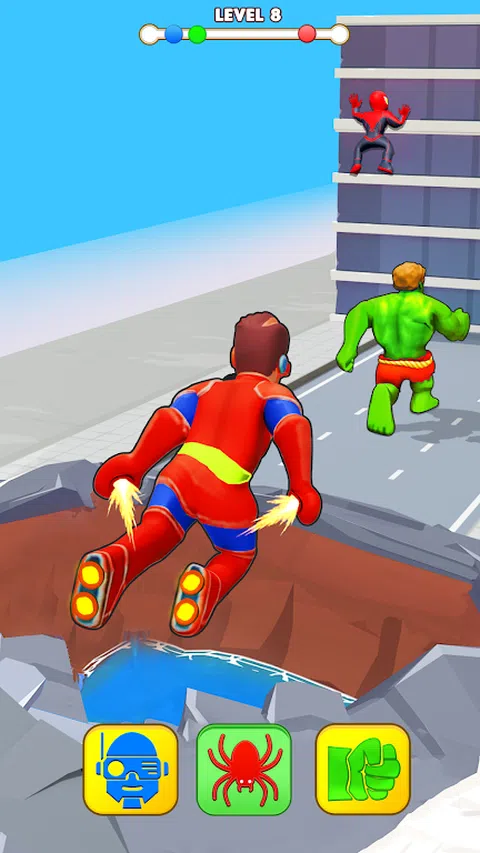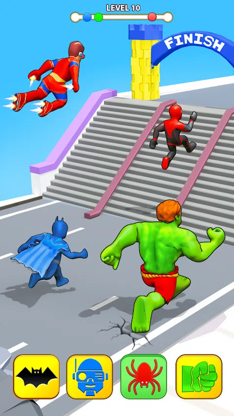 准备好沉浸在英雄变身赛的激动人心的境界中,变身触手可及!这款游戏提供了穿越各种景观的惊险冒险,促使玩家适应、转变并取得胜利。如果您擅长快速思考并喜欢动态游戏,那么这款游戏就是您的理想之选!? 在 Super Hero Shape Transforming 中,你不仅仅是在比赛;你正在掌握陆地、空中和海洋的元素。当你在不同的地形中飞驰时,你需要变身为正确的角色来克服障碍并继续前进。 Super Hero Transforming: Shifting Run 的亮点: ? 令人兴奋的转变:轻松地在角色之间切换,以应对每个地形的挑战。每一次变身都会带来新的体验! ? 令人惊叹的图形:享受精美渲染的环境和角色,让每次运行都成为视觉上迷人的旅程。 ? 有趣的动画和音效:享受游戏中俏皮的动画和有趣的音效,增强整体乐趣。 ? 快节奏的游戏玩法:游戏的快节奏需要快速的反应和决策,为所有级别的玩家提供令人振奋的挑战。 ? 适合所有人:无论您是经验丰富的游戏玩家还是新手,《Shape Transforming: Shifting Run》都适合所有人。 您准备好接受挑战并展示您的英雄变形技能了吗?立即下载英雄变身赛,踏上海陆空的惊心动魄之旅!在《超级英雄变形:变速奔跑》中体验变形和竞速的刺激!立即下载并释放您的适应能力