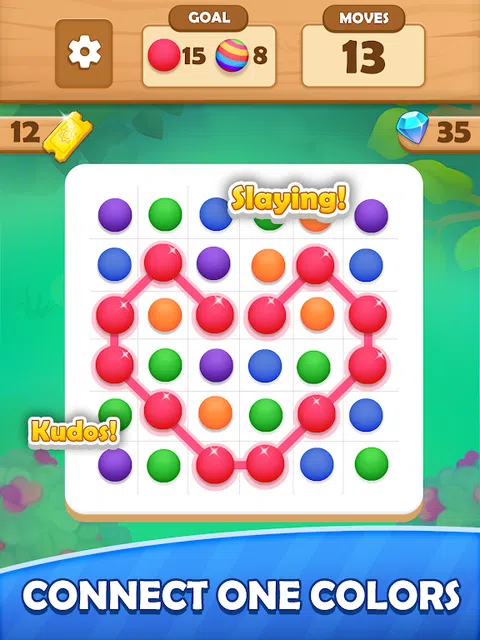 您准备好享受轻松的点游戏体验了吗? Dots Match 邀请您连接相同颜色的圆点,在这个简单而令人上瘾的游戏中消除它们。通过直观的控件,只需点击以选择一个色点并拖动以将其与相同色调的其他点起来。 在步数用完之前,用每个级别的独特目标和战略联系来挑战自己。使用 5 种激动人心的道具来提升您的进度,并享受超过 1000 个不同关卡的挑战。 功能包括: - 禅宗主题:享受轻松的氛围。 - 关卡进度菜单:跟踪您的成就。 - 惊人的道具:使用 5 种独特的道具增强您的游戏体验。 - 可定制的皮肤:使用各种球和圆点设计进行个性化设计。 - 炫酷挑战:通过引人入胜的障碍和有趣的游戏玩法来测试您的技能。 那么,你还在等什么?立即开始您的益智冒险,体验 Dots Match 的无尽乐趣