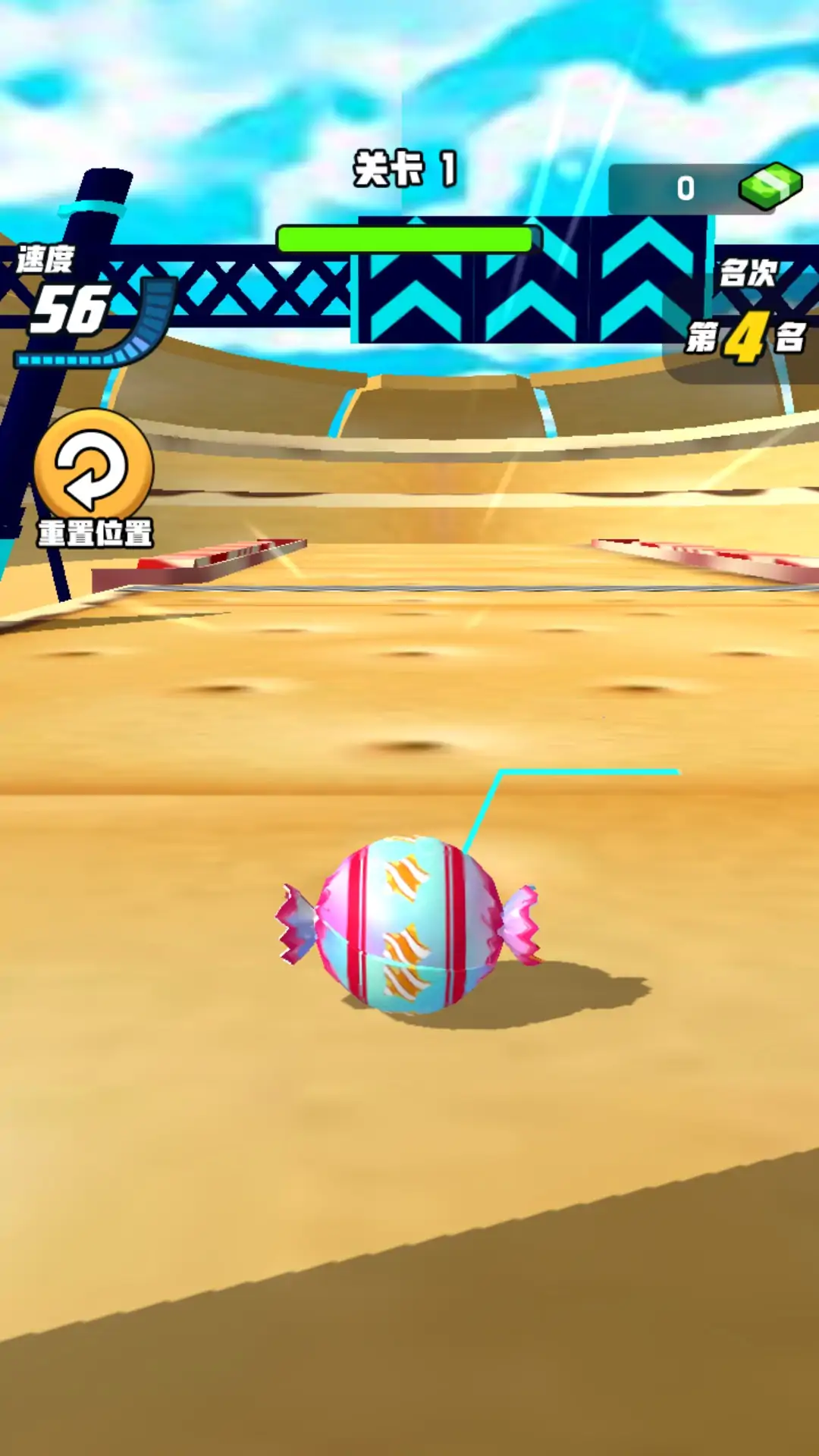 玩家需要操控球球进行竞速比赛,按住屏幕加速小球冲刺,左右滑动控制小球躲避障碍,注意其他小球的位置,要尽可能的取得靠前的名次,获得丰厚的奖励。